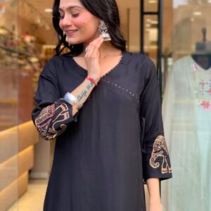 Black Elephant print kurti set
