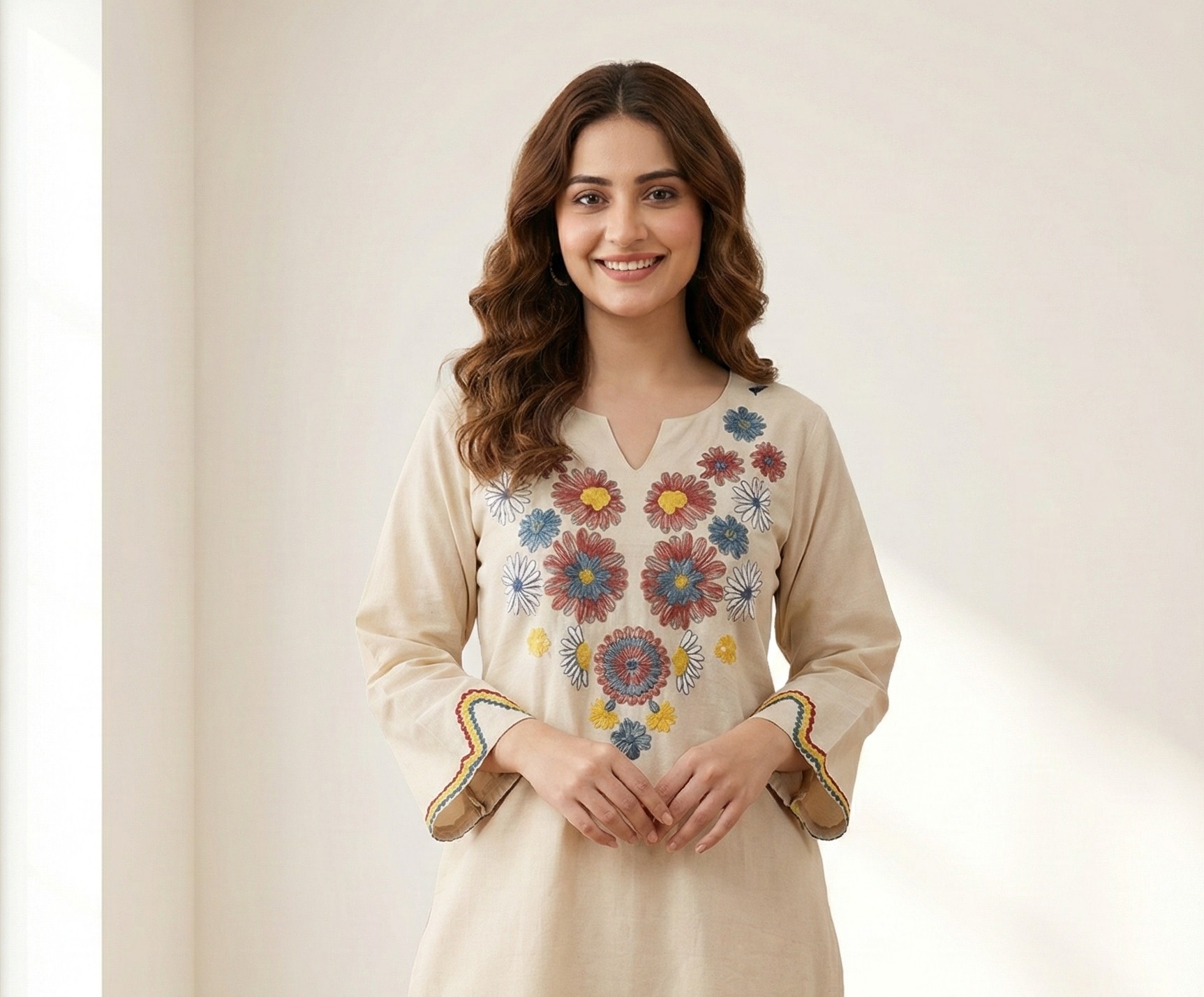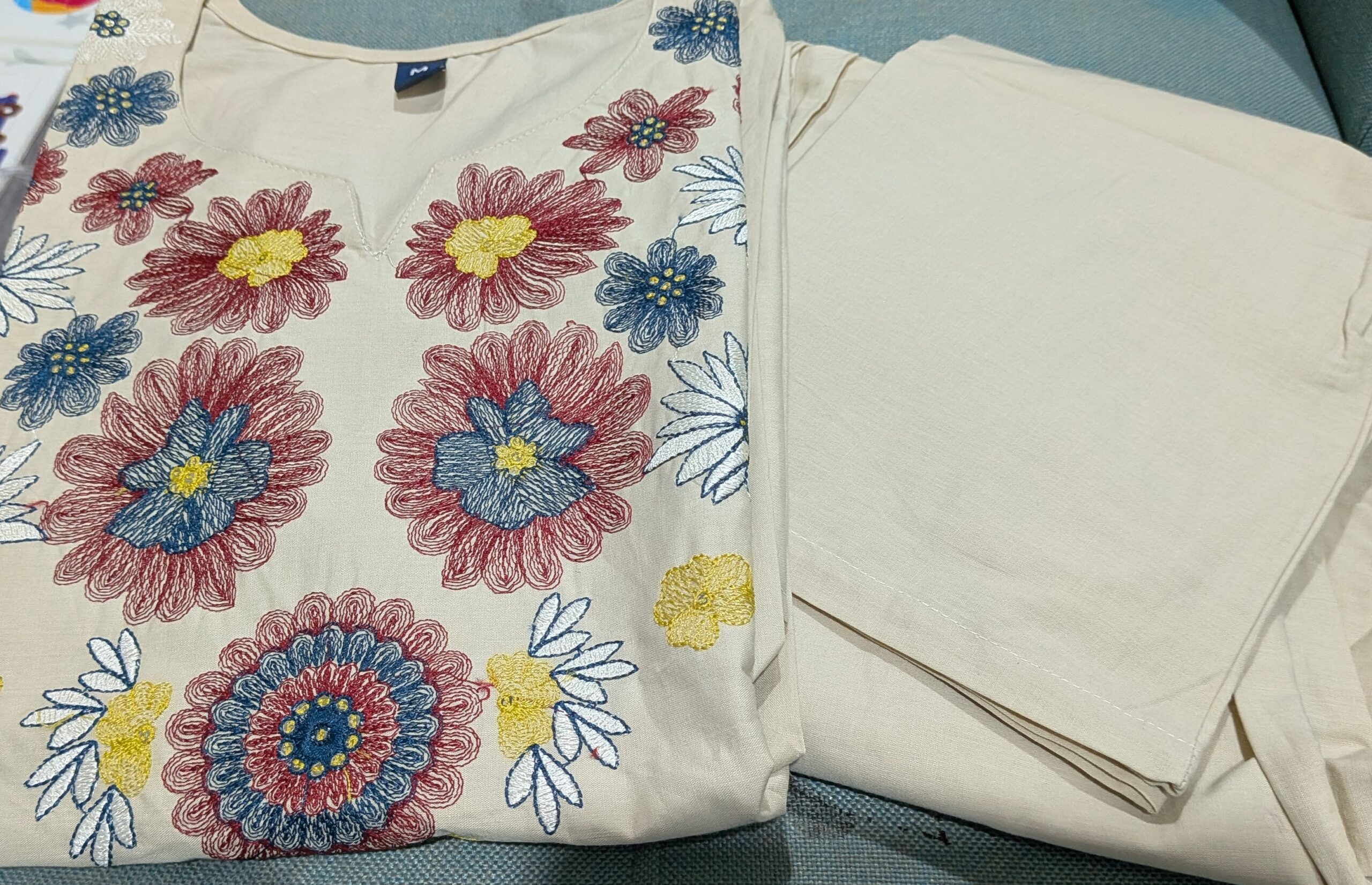 Pure Dabbu cotton kurta pant set with 3/4 sleeves