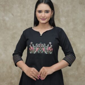 Elegant Floral theme embroidery design over chest area with thread detailing on hands