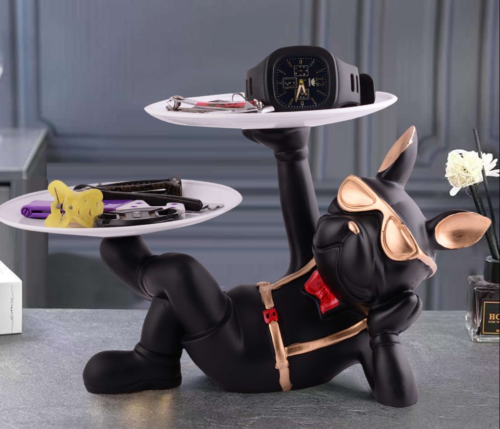 Elevate your style game with our Table top home decor showpieces item of dog with plate For placing ur keys / items