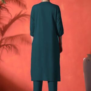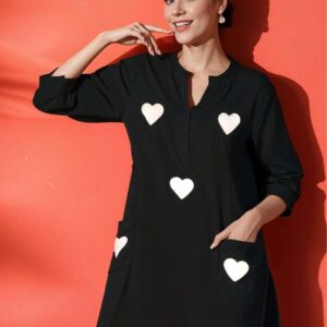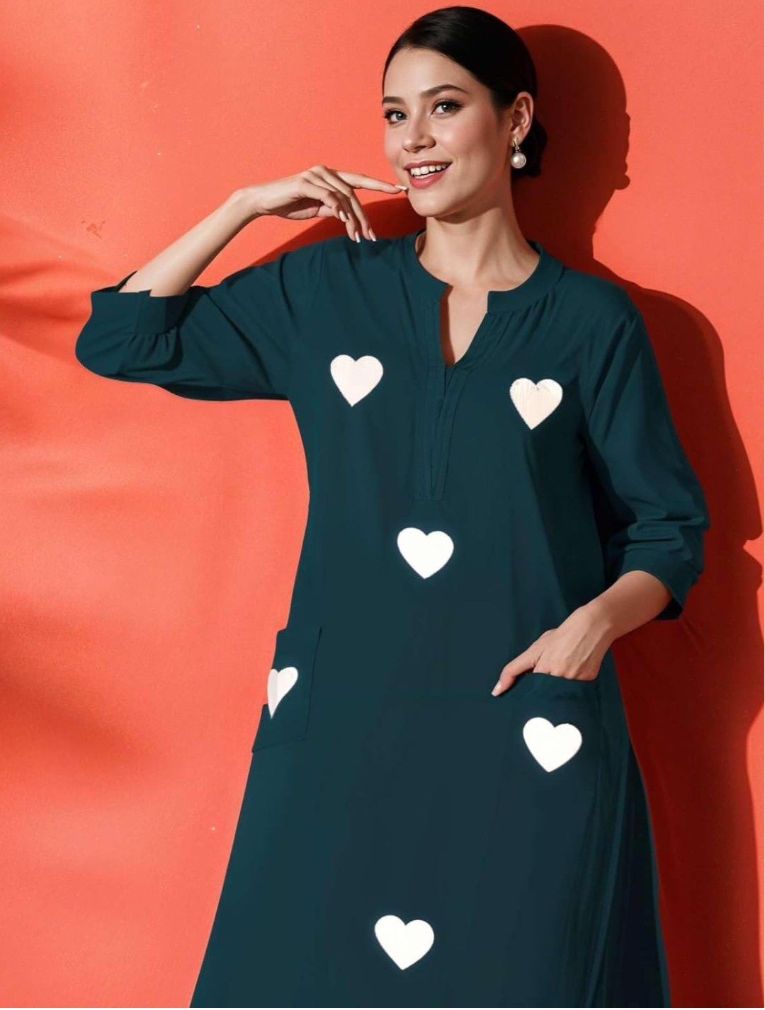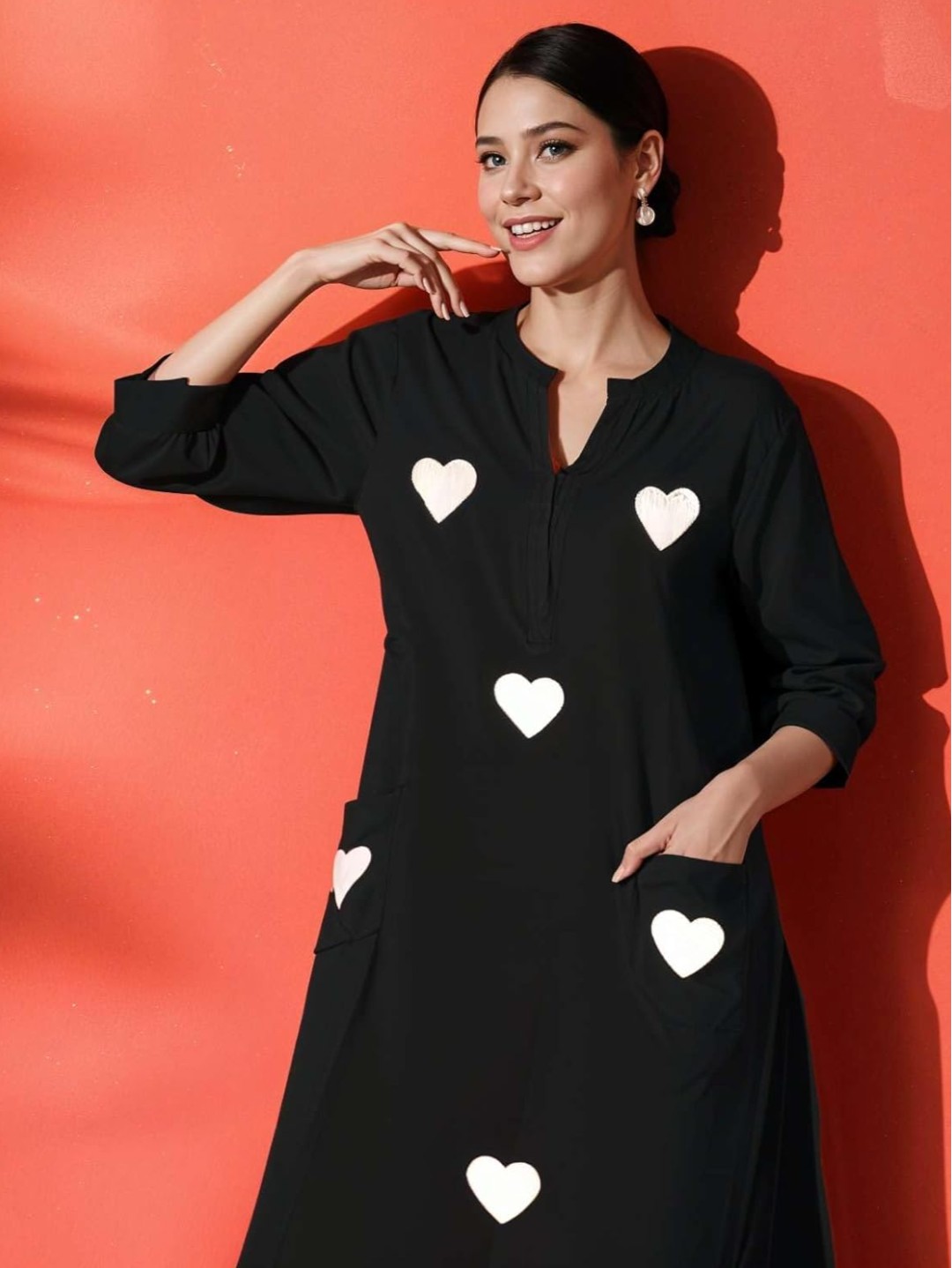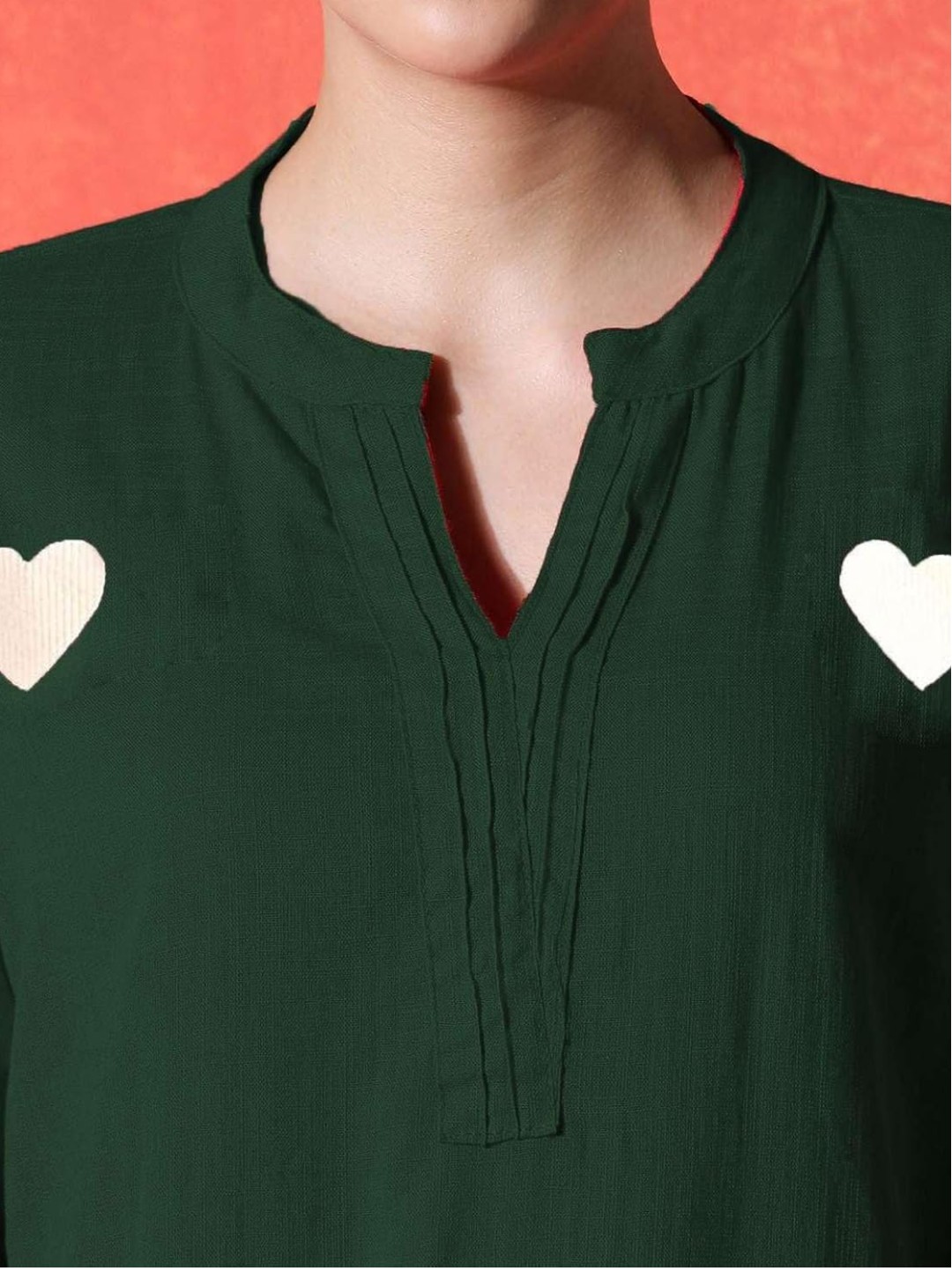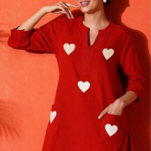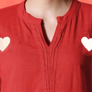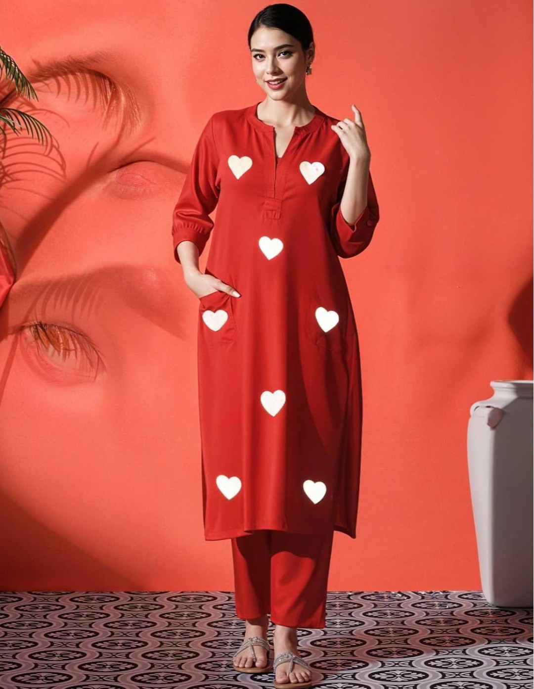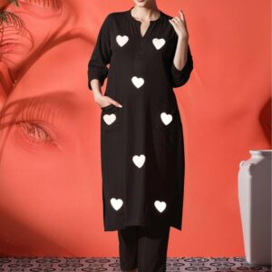 Plain cotton kurta pant set with minimalist heart embroidery print design all over kurta top
