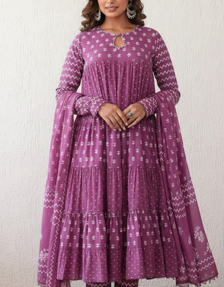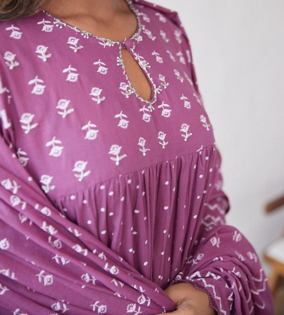Presenting elegant full flair kurta set3 piece set includes bottom & dupatta
