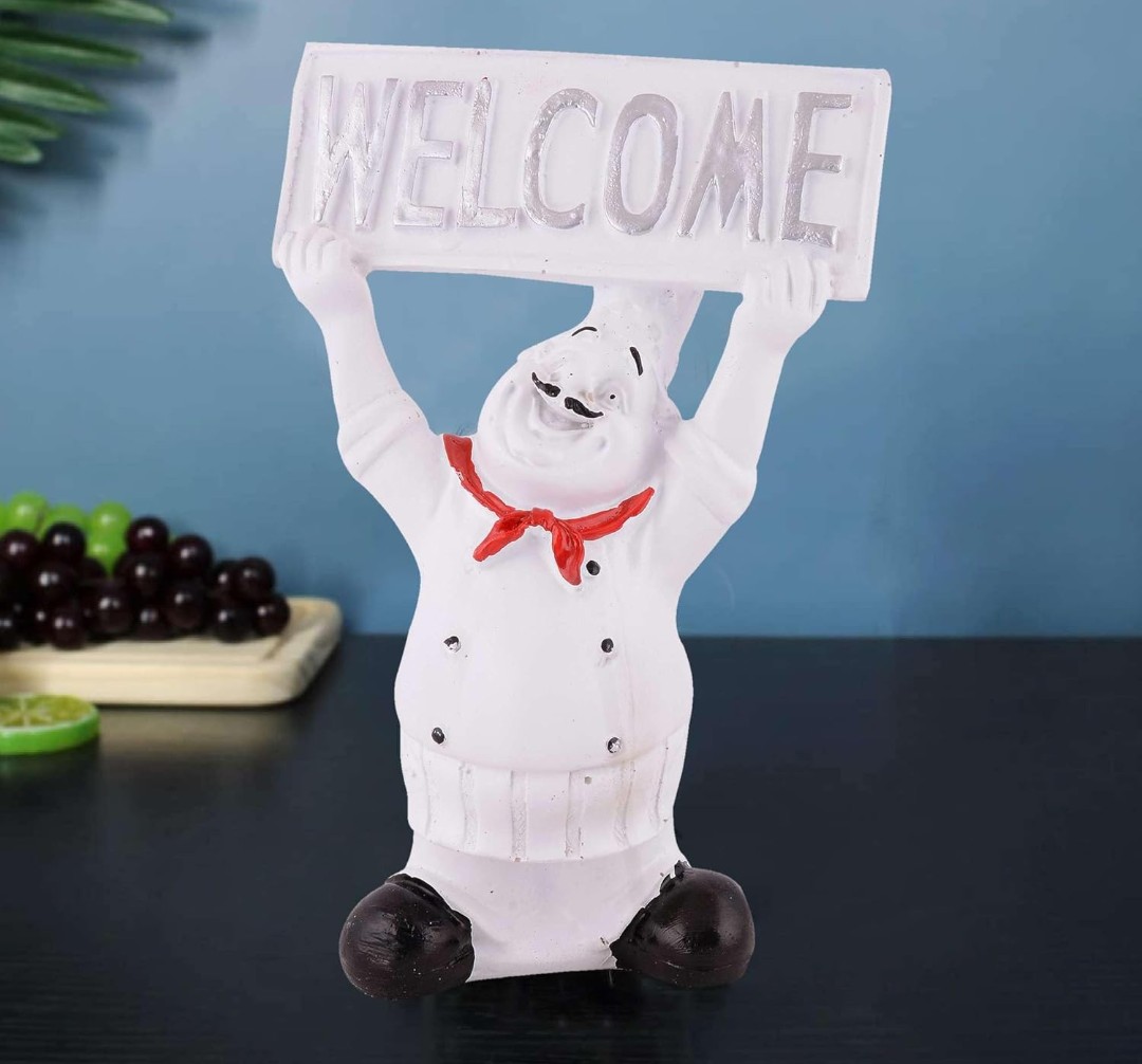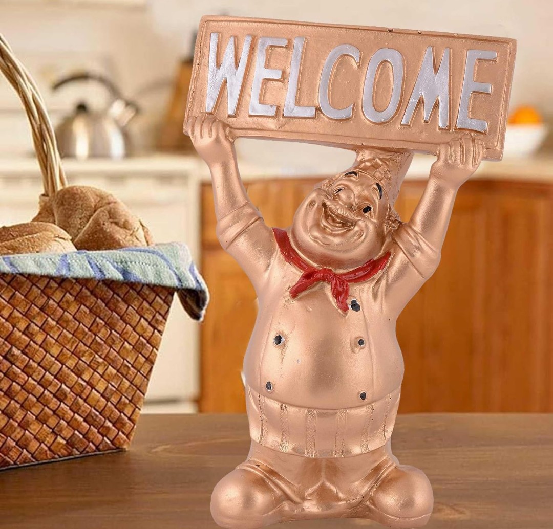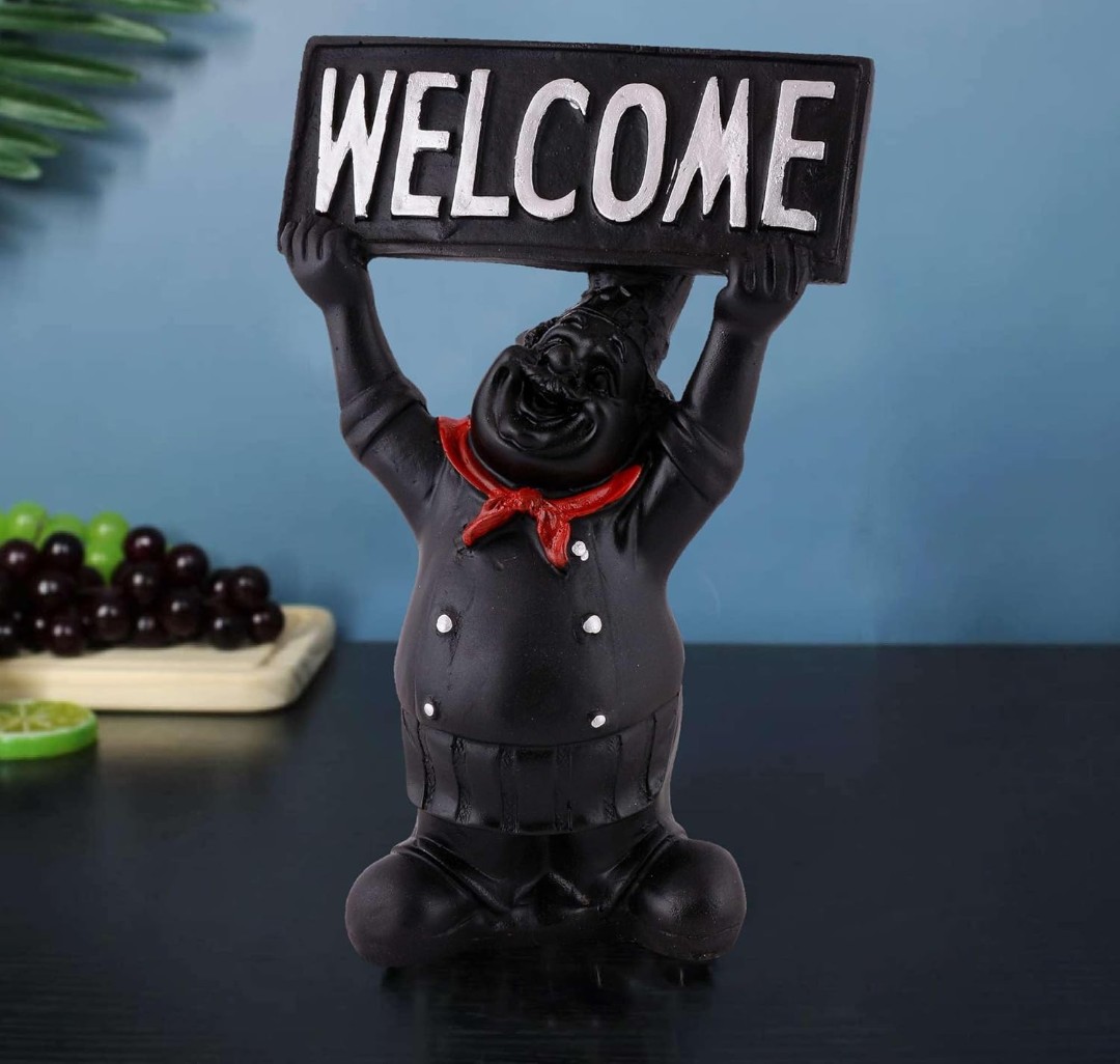 Decorative Accent: This chef statue with a welcome sign adds a charming touch to your home or office decor.