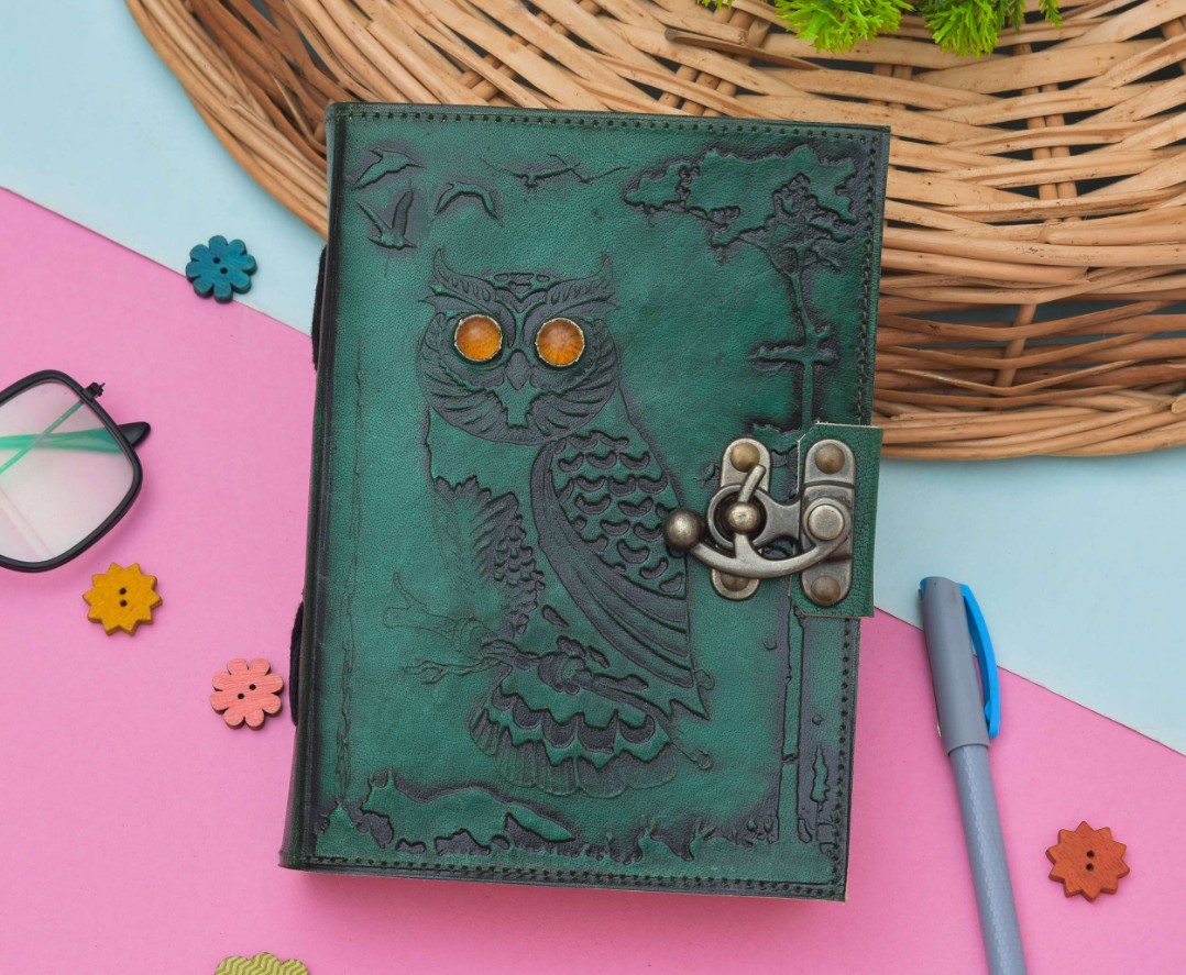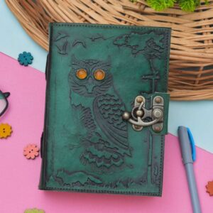 vintage handmade leather journal. Crafted with genuine leather, it radiates authenticity and charm, perfect for those who appreciate classic craftsmanship. The premium antique lock closure adds a touch of elegance and security, ensuring your thoughts and memories are safeguarded within its pages. Inside, you’ll discover 200 White handmade pages, providing ample space for your musings, sketches, and stories to unfold.
