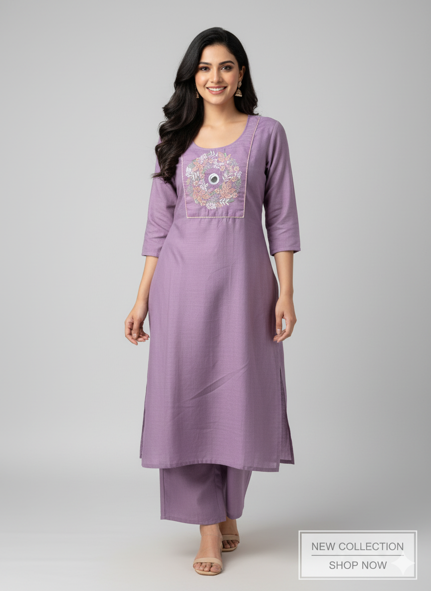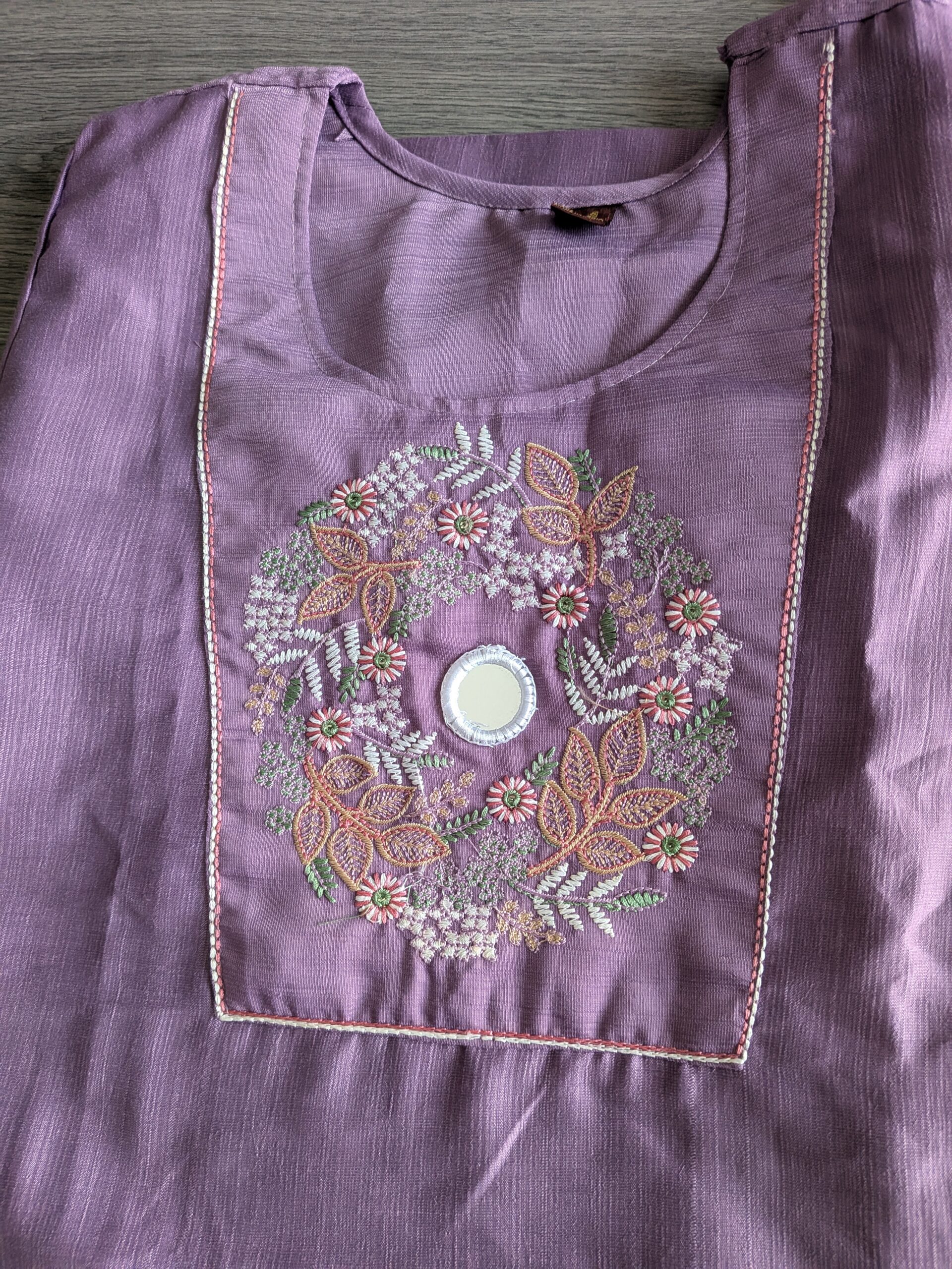 Our violet colour kurta pant set made of Vatican silk fabric soft & comfortable material