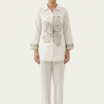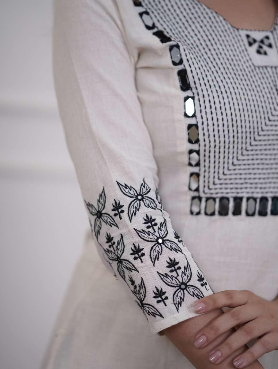 White colour cotton kurta set with embroidery design over yoke part and hands